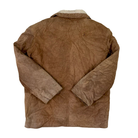 Vintage 90s Brown Sheepskin Suede Shearling Button Up Fully Lined Jacket L