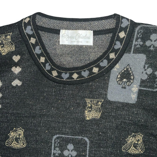 VTG 80s RARE 'Marisa Christina' Black Grey Playing Cards Novelty Jumper UK 10/12