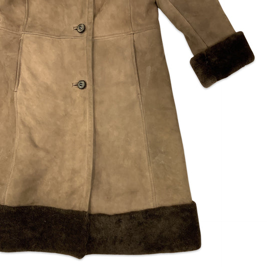 Vintage 70s Brown Midi Shearling Coat 10 12 14