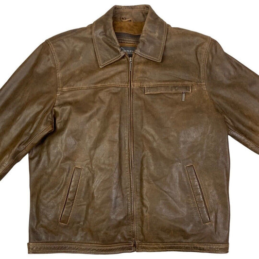 Vintage 90s Brown Mens Zip Down Leather Jacket XL
