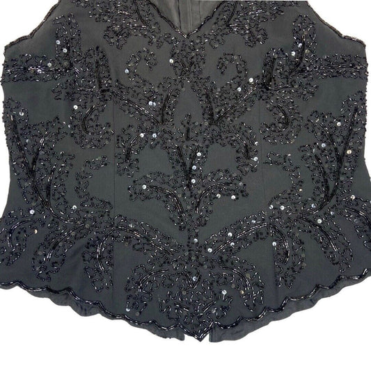 Vintage 90s Black Embellished Disco Party Sparkly Sequin Top 12 14 M