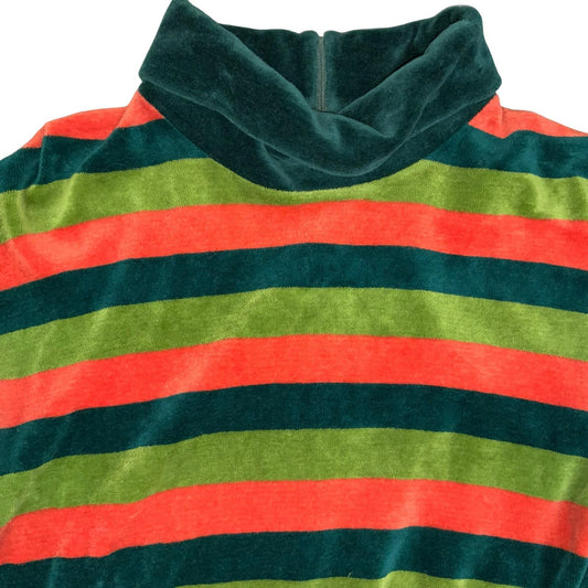 Vtg 70s 'Palmers' Green Orange Striped Velvet Turtle-Neck Casual Jumper S UK 10