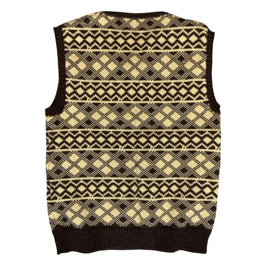 Vtg 70s Brown Beige Geometric Argyle Golf Casual V-Neck Sweater Vest S UK 12