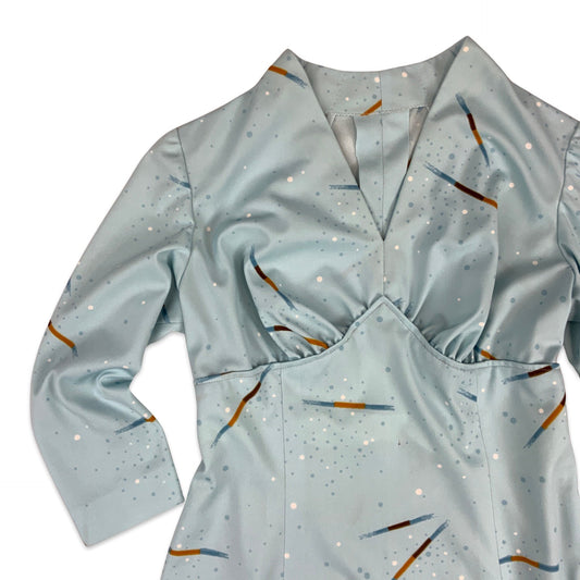 Vintage 70s Graphic Print Midi Dress Blue Orange Brown 10 12