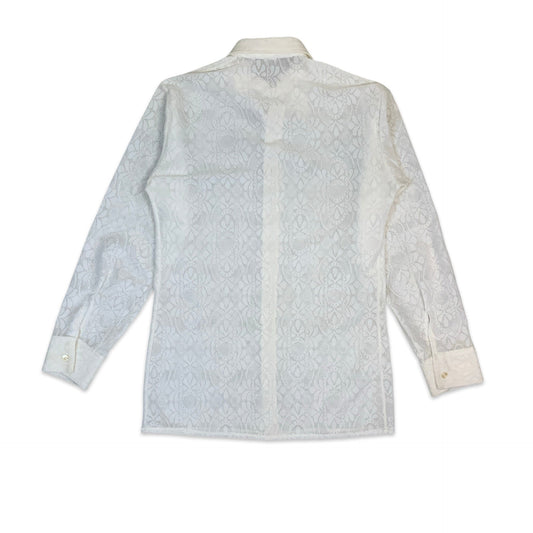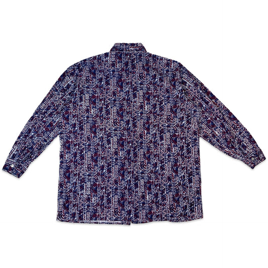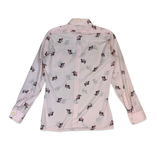 70s White & Purple Geometric Print Dagger Collar Shirt XL
