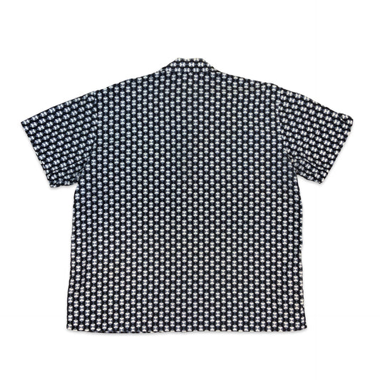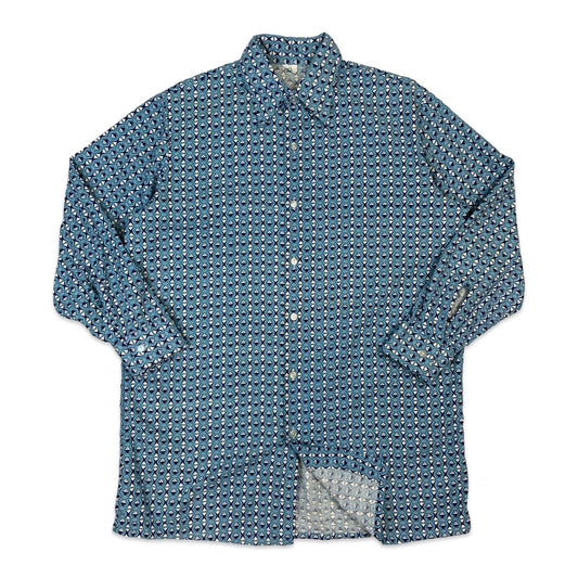 70s Blue & White Geometric Print Short Sleeve Shirt M L