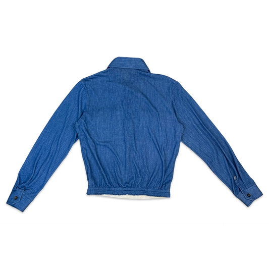 70s Blue Golf 3/4 Button Long Sleeve Dagger Collar Shirt S
