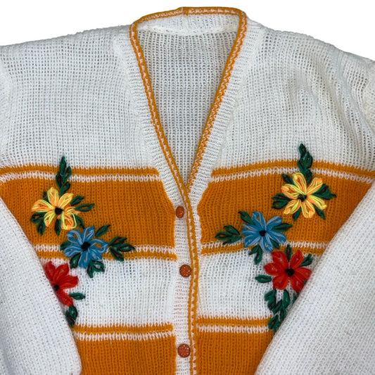 Vintage 70s 80s White Yellow Floral Cardigan S 10 12