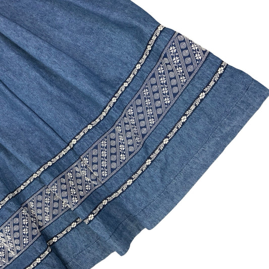 Vintage 70s 80s 'Heller-Sport' Blue White Embroidered Denim Midi Shirt 8 10