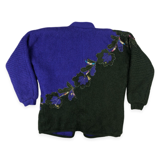 Vintage 80s Purple Black Oversized Cardigan 14 16 18 20