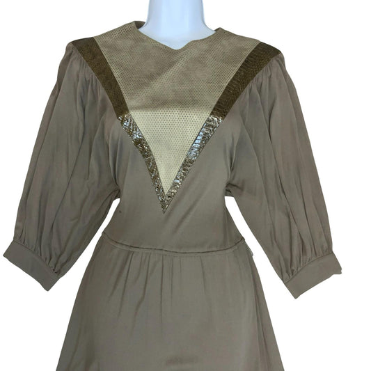 Vtg 80s 'Louis Feraud' Brown Bronze Faux Snake Luxurious Party Aline Dress UK 8