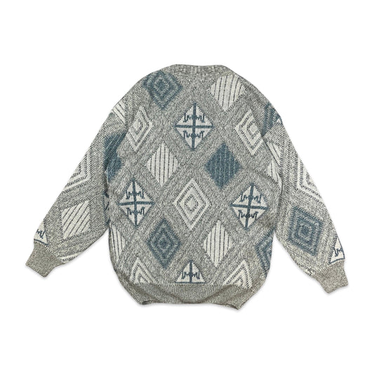 Vintage Grey Blue Abstract Knit Cardigan M L