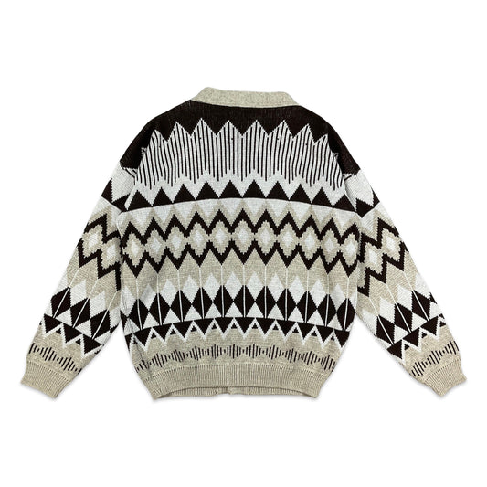 Vintage 80s Brown Beige Pattern Cardigan L XL XXL