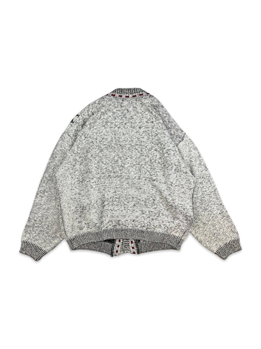 Vintage 80s White Black & Red Abstract Cardigan XL XXL