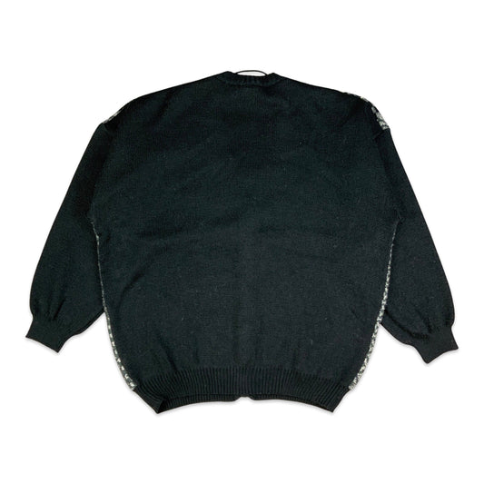 Vintage 80s Men's Black & White 3D Knit Cardigan XL 2XL 3XL