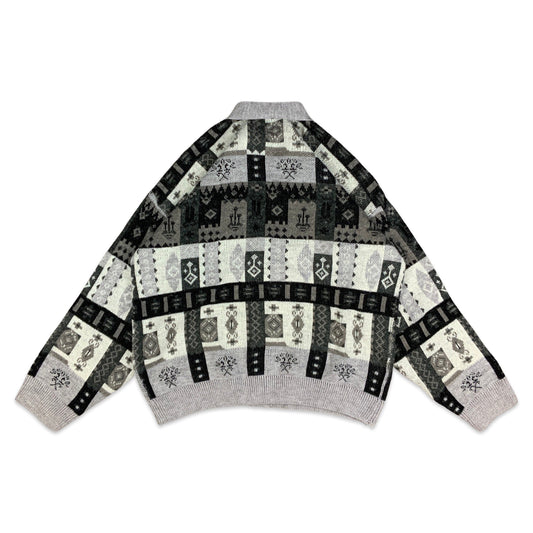 Vintage Grey Black Cream Aztec Print Cardigan S M