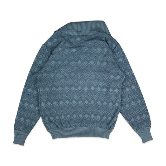 Vintage 80s Teal & White Cardigan L XL