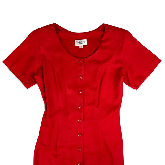 Vintage 80s Pink & White Gingham Check Button Up Shirt Dress 10 12