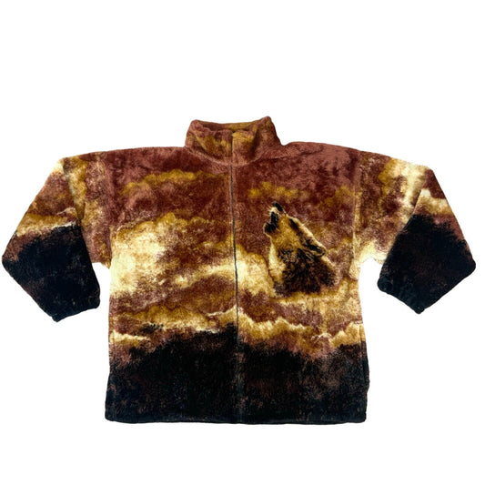 VTG 80s 90s BEAR RIDGE OUTFITTERS BROWN GRAPHIC BEAR FLEECE JACKET XXL