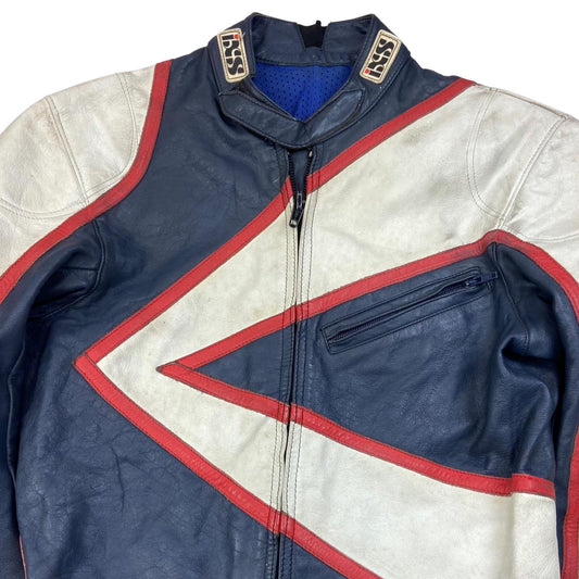 VTG 80s IXS LEATHER BIKER JACKET ZIP MOTORCYCLE RACING ROCKER 34” XS