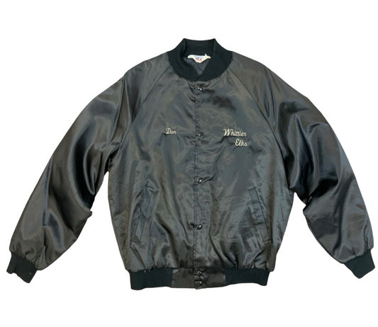 VTG USA 80s WHITIER ELKS CLUB LODGE CA SILKY COACH VARSITY JACKET FRAT MASONS L