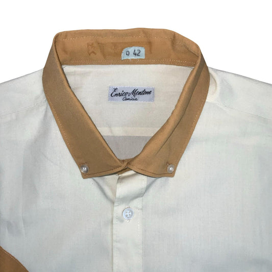 VTG 80s 'Enrico Mentone' White Brown Grey Stripe Short Sleeve Casual Shirt XL