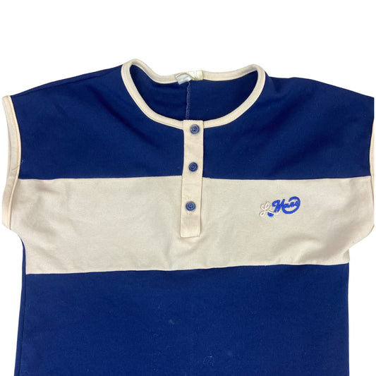 Vintage 80s Navy Blue Cream Button Front Tank Top 8 10 S