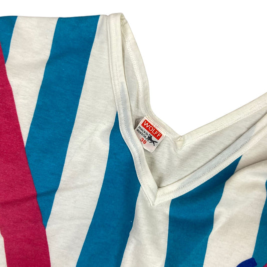 Vintage 80s White Blue Pink V Neck Regatta Retro T-shirt 8 10 S