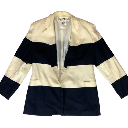 Vintage 80s Cream Black Escada Wool Silk Striped Blazer 12 14 M