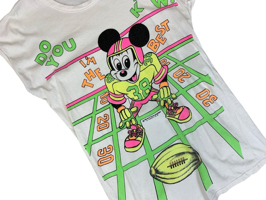 VTG 1980s DISNEY MICKEY MOUSE AMERICAN FOOTBALL WHITE T SHIRT BOLD PRINT S