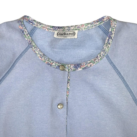 VTG 80s 'CACHAREL' LIGHT BLUE FLORAL CHIC CASUAL PULL-OVER SWEATSHIRT UK 14/ 16