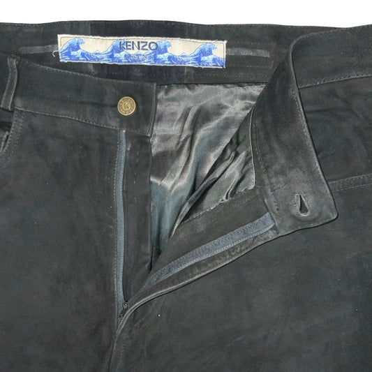 Vtg 80s 'Kenzo' Black Soft Velvet Silk Lined Casual Straight-Leg Trousers UK 16