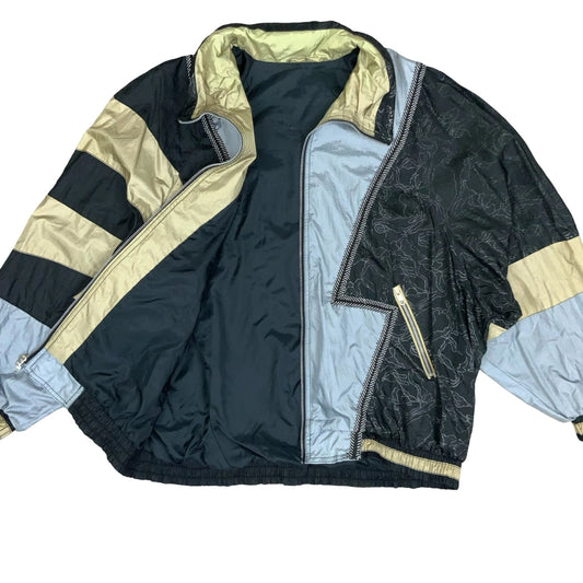 VTG 80s 90s 'GALLERY SPORT' GOLD BLACK BLUE COLOUR BLOCK SHELL JACKET 2XL