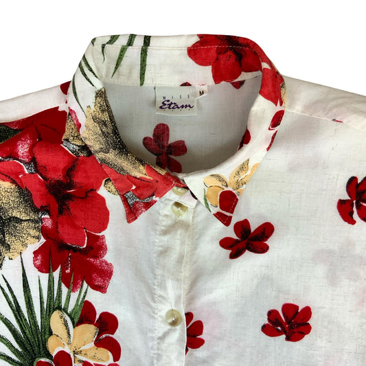 VTG 80s 90s 'MISS ETAM' WHITE RED FLORAL CROPPED BUTTON-UP FLORIDA BLOUSE L 16