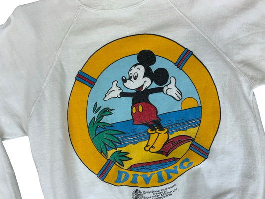 VTG 1980s MICKEY MOUSE WALT DISNEY SWEATSHIRT DIVING WHITE SMALL