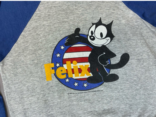 VTG 1984 GREY BLUE GENUINE FELIX THE CAT RAGLAN 80s BASEBALL SWEATSHIRT LARGE
