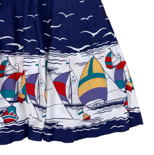 VTG 1980s DOES 1950s BLUE SAILBOAT NOVELTY PATTERN CIRCLE SWING MIDI SKIRT XS 4