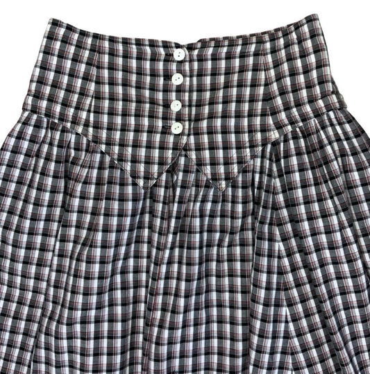 VTG 80s 'BETTY BARCLAY' BLACK WHITE GINGHAM CHECK HIGH-WAIST PRAIRIE SKIRT S 8