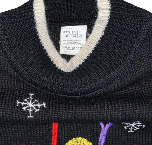 VTG 90s DOES 80s RETRO BLACK SKI GRAPHIC EMBROIDERED PULL-OVER JUMPER MEDIUM