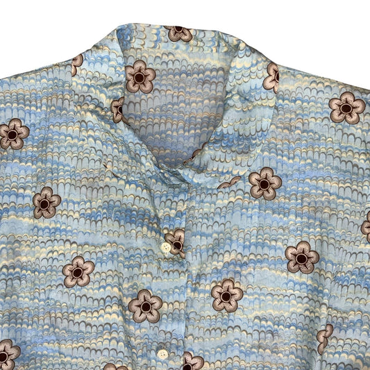VTG 80s SLEEVELESS CAP SLEEVE BLUE FLORAL PATTERNED BUTTON-UP SUMMER BLOUSE M 14
