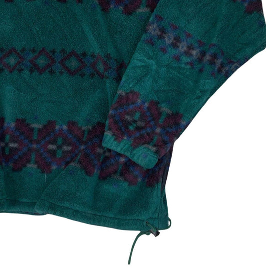 VTG 80S 90S EDDIE BAUER GREEN PURPLE AZTEK PULLOVER FLEECE LARGE