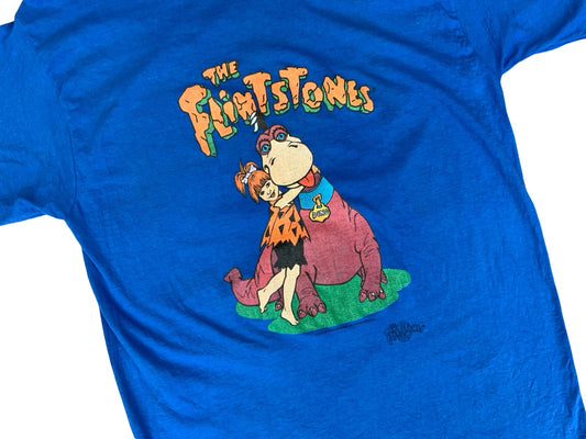 VTG 90s GENUINE THE FLINTSTONES CARTOON T SHIRT DINO & PEBBLES BLUE M