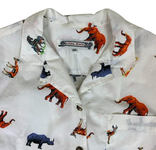 VTG 90s 00s KRIZIA WHITE ANIMAL SAFARI ZOO GRAPHIC BUTTON-UP SHIRT M 12