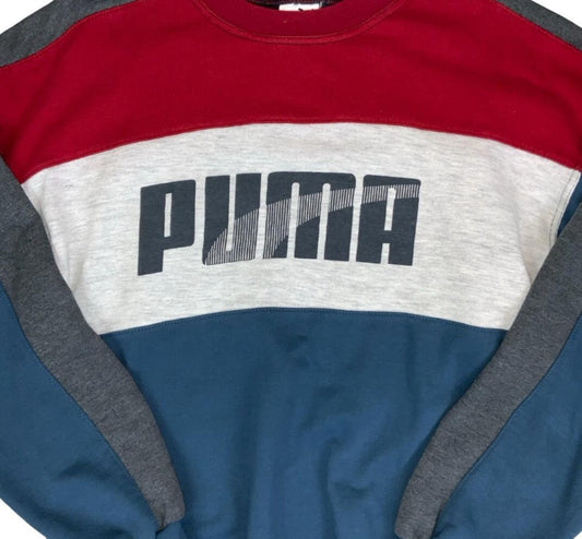 VTG 90S PUMA GREY RED BLUE PULL-OVER SWEATSHIRT MEDIUM