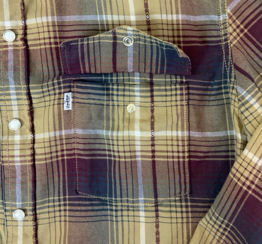 VTG 90S LEVI'S BROWN CHECK WESTERN LONG SLEEVE CASUAL LARGE