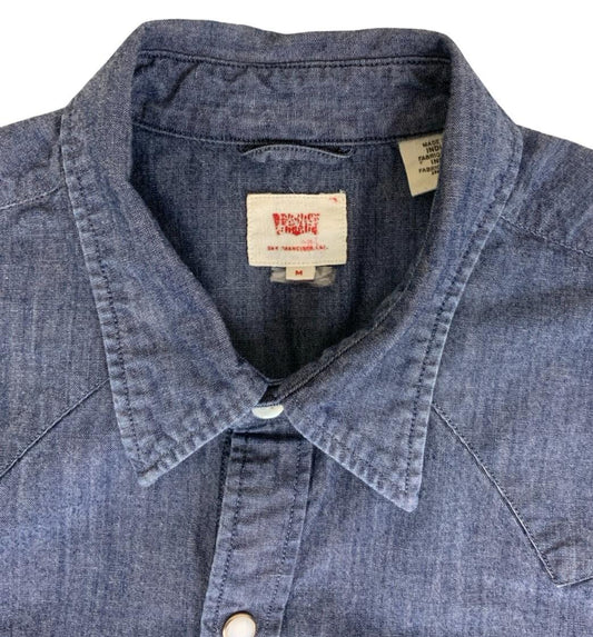 VTG 90S LEVI'S BUE WESTERN DENIM SNAP BUTTON RED TAB SHIRT SMALL