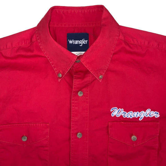 VTG 90S WRANGLER RED LONG SLEEVED BUTTON DOWN EMBROIDERED SHIRT LARGE