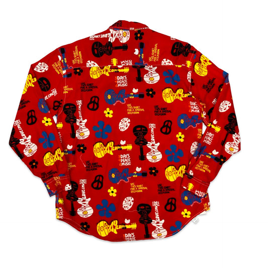 Vintage 90s-00s Hippie Themed Red Printed Shirt L