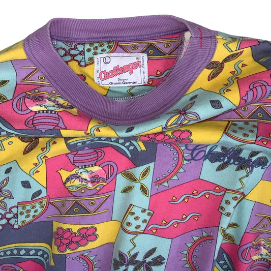 Vintage 90s 'Challenger' by 'Gianni Germani' Purple Pink Yellow Blue Geometric Patterned Graphic Sweatshirt L XL