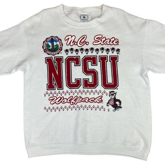 Vintage 90s White N.C. State Wolfpack NCSU NCAA Crewneck Sweatshirt Large